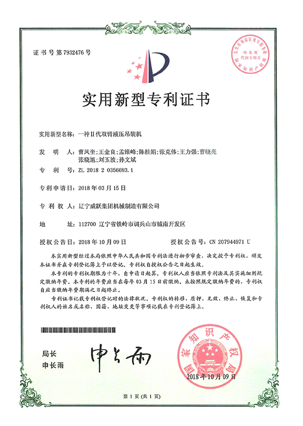 • 雙臂液壓吊裝機(jī)的工作原理